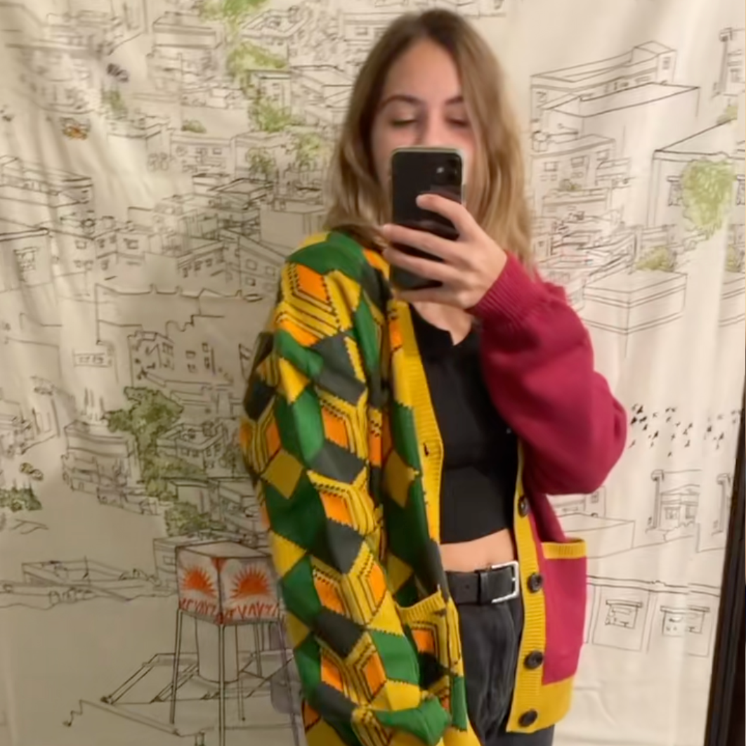 Love this cardigan, it’s oversized just like I wanted. Not too heavy that I feel like I’m melting even when worn in summer and keeps me warm in cold buildings great quality too. Washed several times, color isn’t faded at all!